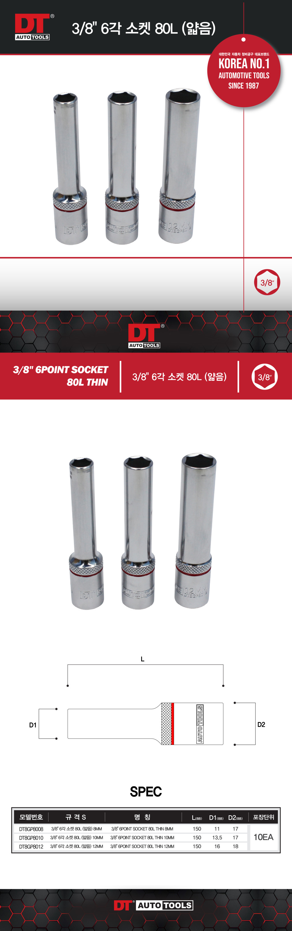 [DT] 3/8 6각 엑스트라 롱 소켓 80L (얇음)